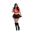 From the Exposed by Magic Silk collection, this style includes: a red and black plaid bralette featuring hook-and-eye closures in the back and adjustable shoulder straps with gold-tone sliders, a black wet-look peplum skirt, and a red tie collar.