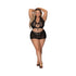 Breathable mesh in midnight black paired with lovely lace and silky ribbon.