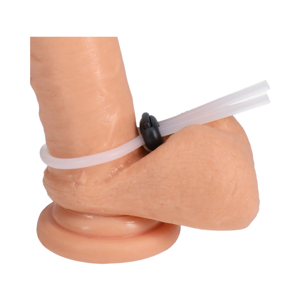 Soft silicone erection cord with a double lock is fully adjustable to fit everyone. Compatible with silicone lubricants.