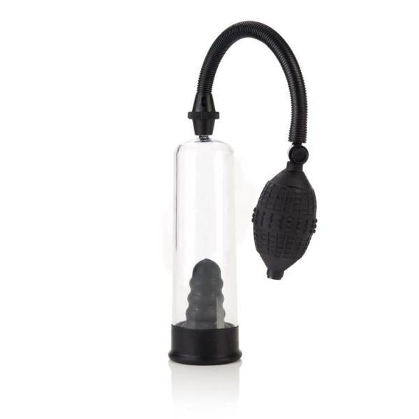 Enhancement pump designed for fast results. Flanged clear cylinder. Detachable, flexible, non-crimping hose. EZ squeeze pressure bulb with quick release valve. Rubber sleeve for comfort and a secure seal. Materials ABS plastic cylinder, PVC hose and bulb, Thermoplastic Rubber TPR donut. 7.5 inches by 2.2 inches.